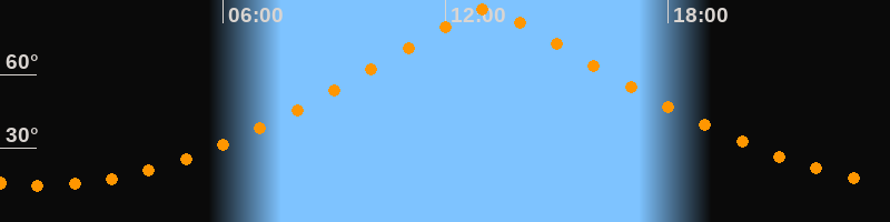 | Höchster Stand (Kulmination) | 13:05 Uhr (h = 86,4°) |
