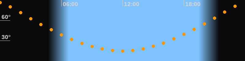 | Höchster Stand (Kulmination) | 23:54 Uhr (h = 86,4°) |