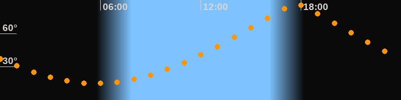 | Höchster Stand (Kulmination) | 17:44 Uhr (h = 86,4°) |