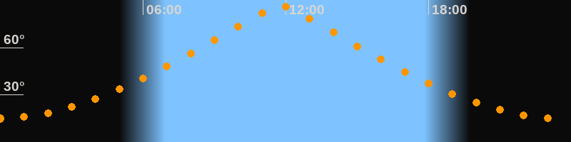 | Höchster Stand (Kulmination) | 11:46 Uhr (h = 86,4°) |
