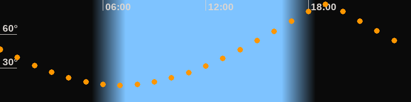 | Höchster Stand (Kulmination) | 19:00 Uhr (h = 86,4°) |