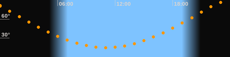 | Höchster Stand (Kulmination) | 23:03 Uhr (h = 86,4°) |