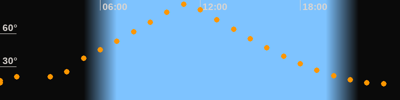 | Höchster Stand (Kulmination) | 11:07 Uhr (h = 86,4°) |