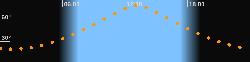 | Höchster Stand (Kulmination) | 13:06 Uhr (h = 82,7°) |