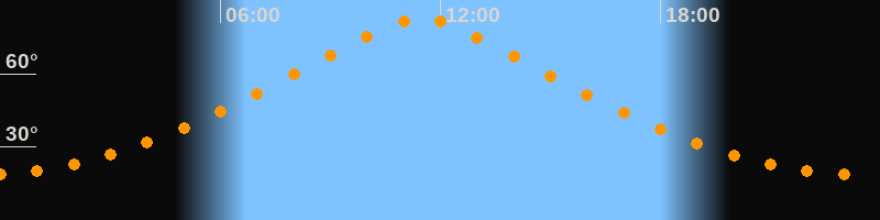 | Höchster Stand (Kulmination) | 11:27 Uhr (h = 82,7°) |