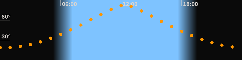 | Höchster Stand (Kulmination) | 12:20 Uhr (h = 82,7°) |