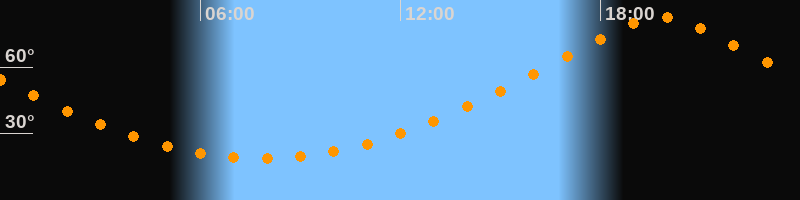 | Höchster Stand (Kulmination) | 19:49 Uhr (h = 82,7°) |