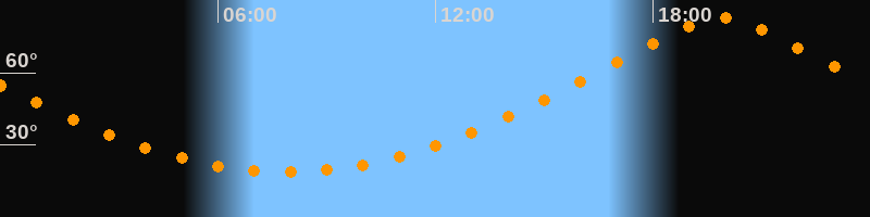 | Höchster Stand (Kulmination) | 19:53 Uhr (h = 82,7°) |