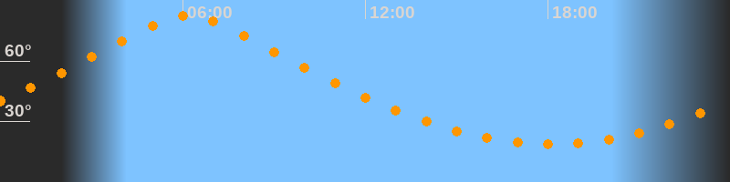 | Höchster Stand (Kulmination) | 06:09 Uhr (h = 82,7°) |