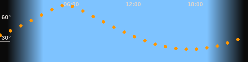 | Höchster Stand (Kulmination) | 06:22 Uhr (h = 82,7°) |