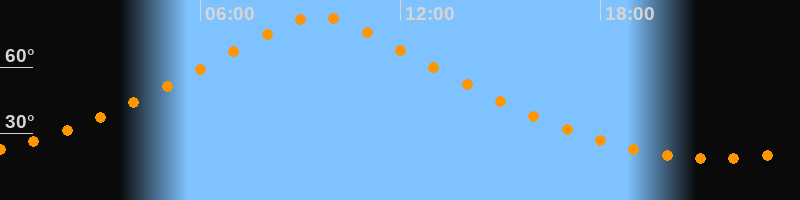 | Höchster Stand (Kulmination) | 09:32 Uhr (h = 82,7°) |