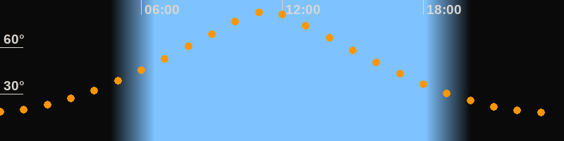 | Höchster Stand (Kulmination) | 11:20 Uhr (h = 82,9°) |