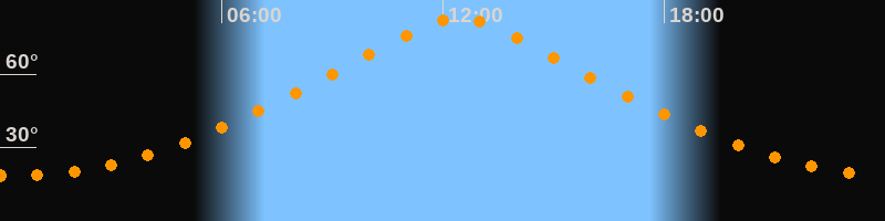 | Höchster Stand (Kulmination) | 12:24 Uhr (h = 82,9°) |