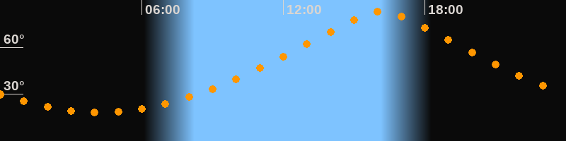 | Höchster Stand (Kulmination) | 16:09 Uhr (h = 82,9°) |