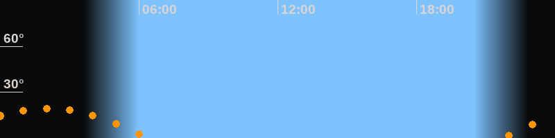 Höchster Stand (Kulmination)02:03 Uhr (h = 19,5°)