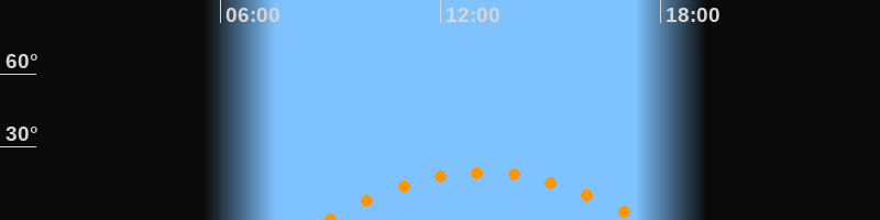 Höchster Stand (Kulmination)13:10 Uhr (h = 19,5°)