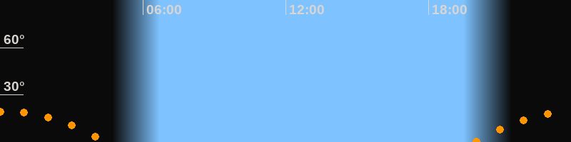 Höchster Stand (Kulmination)00:10 Uhr (h = 19,5°)