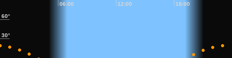 Untergang03:54 Uhr im Südwesten (αAz = 238,6°)