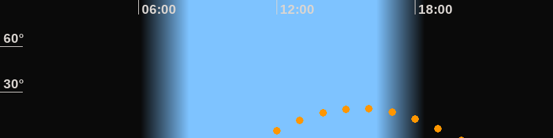 Höchster Stand (Kulmination)15:34 Uhr (h = 19,5°)