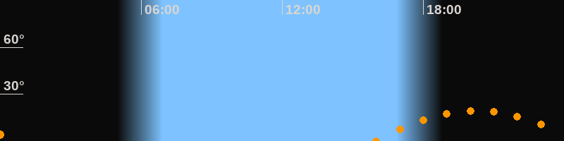 Untergang00:34 Uhr im Südwesten (αAz = 238,6°)