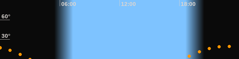 Aufgang18:19 Uhr im Südosten (αAz = 121,4°)
