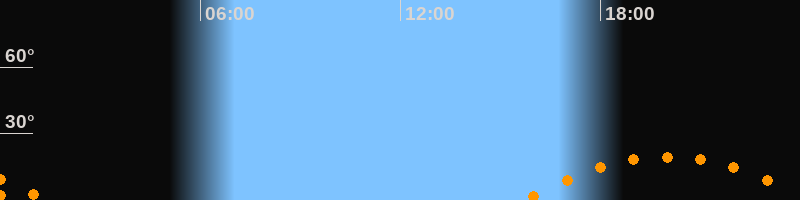 Untergang00:19 Uhr im Südwesten (αAz = 238,6°)