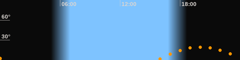 Untergang00:20 Uhr im Südwesten (αAz = 238,6°)