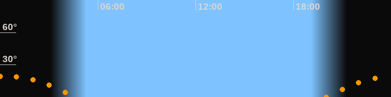 Höchster Stand (Kulmination)00:16 Uhr (h = 19,5°)
