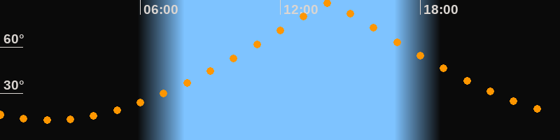 | Höchster Stand (Kulmination) | 14:05 Uhr (h = 88,4°) |