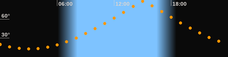 | Höchster Stand (Kulmination) | 15:03 Uhr (h = 88,4°) |
