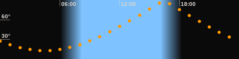| Höchster Stand (Kulmination) | 16:27 Uhr (h = 88,4°) |
