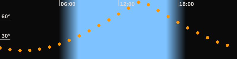 | Höchster Stand (Kulmination) | 14:17 Uhr (h = 88,4°) |