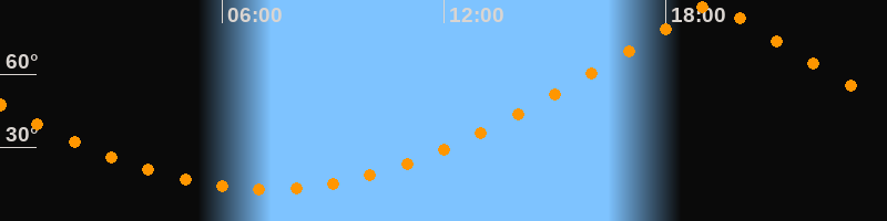 | Höchster Stand (Kulmination) | 19:13 Uhr (h = 88,4°) |