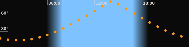 | Höchster Stand (Kulmination) | 14:12 Uhr (h = 88,4°) |