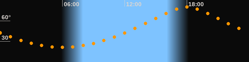 | Höchster Stand (Kulmination) | 17:59 Uhr (h = 79,9°) |