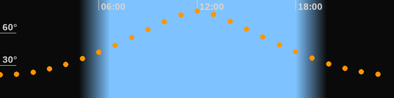 | Höchster Stand (Kulmination) | 12:02 Uhr (h = 79,9°) |