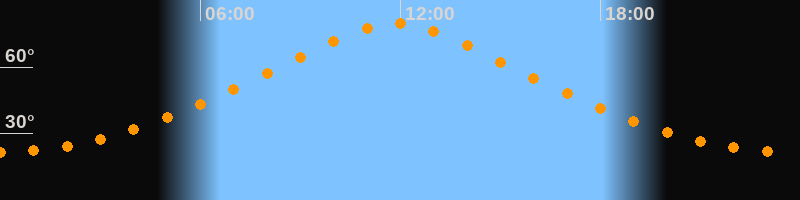 | Höchster Stand (Kulmination) | 11:51 Uhr (h = 79,9°) |