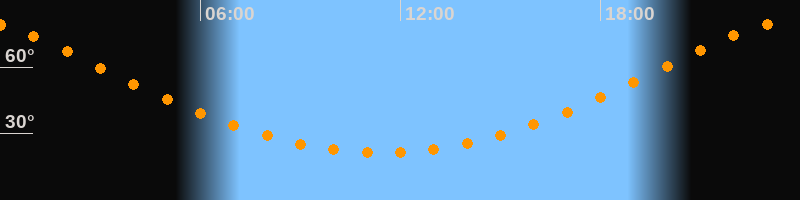 Höchster Stand (Kulmination)23:25 Uhr (h = 79,9°)