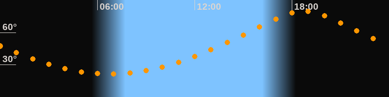 | Höchster Stand (Kulmination) | 18:45 Uhr (h = 79,9°) |