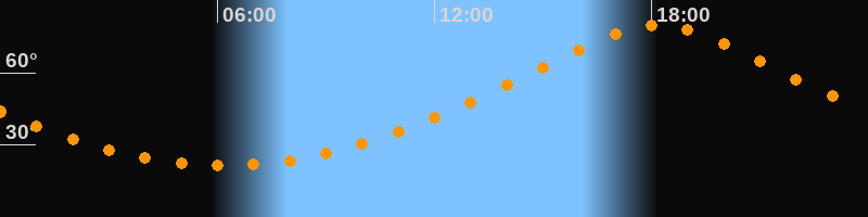 | Höchster Stand (Kulmination) | 18:10 Uhr (h = 79,9°) |