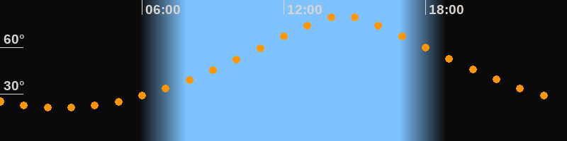 | Höchster Stand (Kulmination) | 14:30 Uhr (h = 79,9°) |