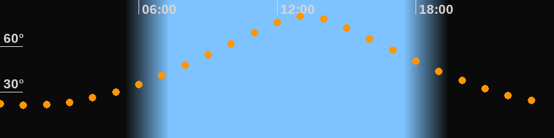 | Höchster Stand (Kulmination) | 13:12 Uhr (h = 79,9°) |