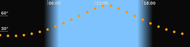 | Höchster Stand (Kulmination) | 13:29 Uhr (h = 79,9°) |