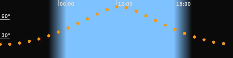 | Höchster Stand (Kulmination) | 12:18 Uhr (h = 79,9°) |