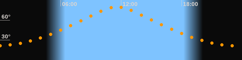 | Höchster Stand (Kulmination) | 11:35 Uhr (h = 79,9°) |