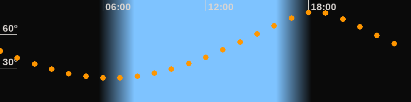 | Höchster Stand (Kulmination) | 18:25 Uhr (h = 79,9°) |