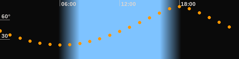 | Höchster Stand (Kulmination) | 18:01 Uhr (h = 79,9°) |