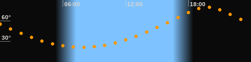 | Höchster Stand (Kulmination) | 19:49 Uhr (h = 79,9°) |