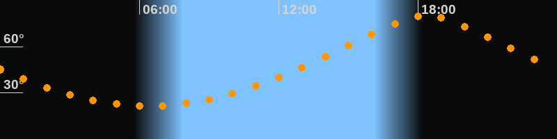 | Höchster Stand (Kulmination) | 18:22 Uhr (h = 79,9°) |