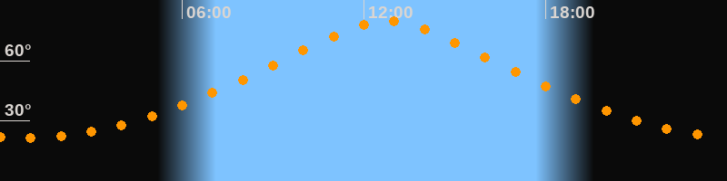 | Höchster Stand (Kulmination) | 12:46 Uhr (h = 79,9°) |